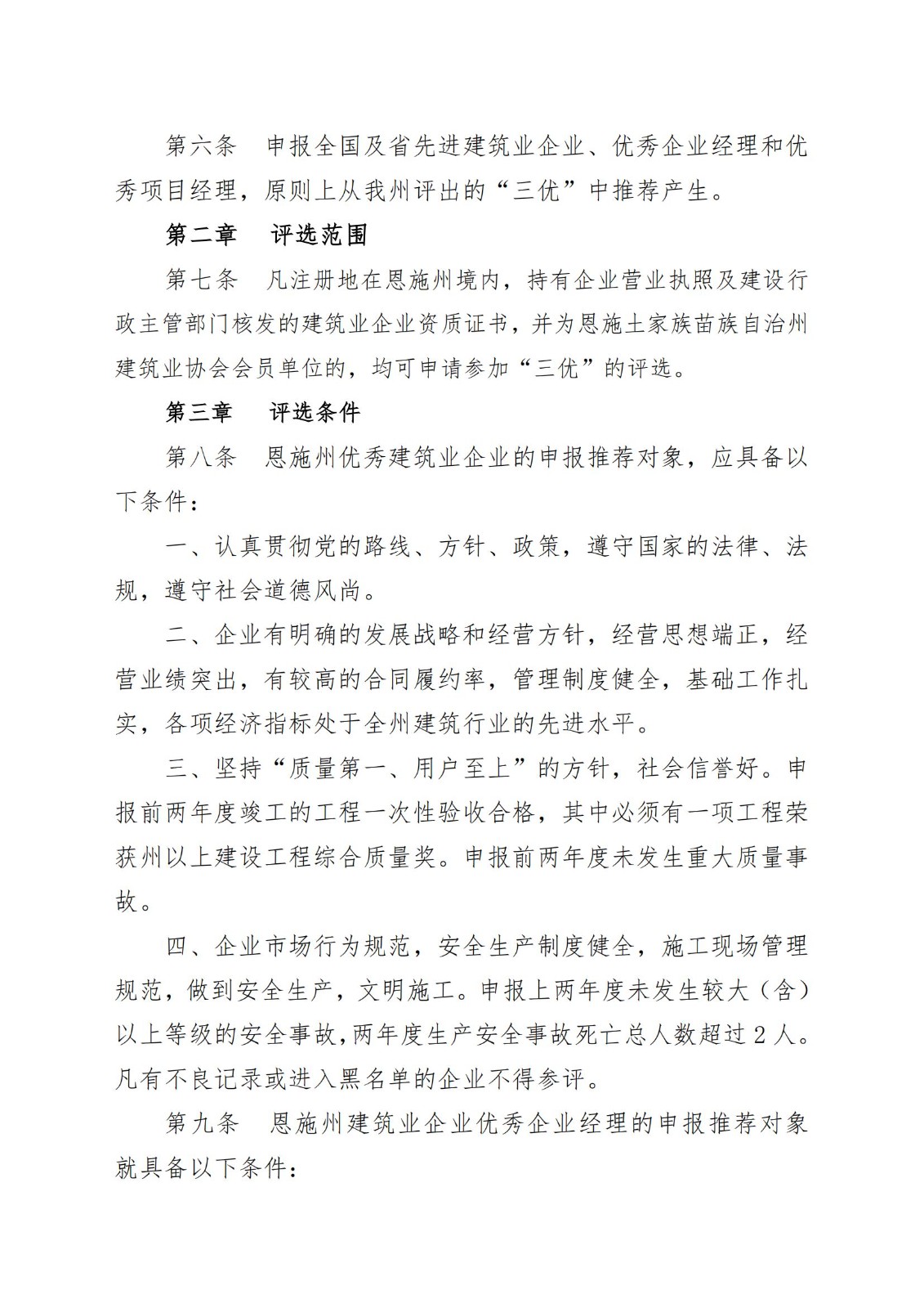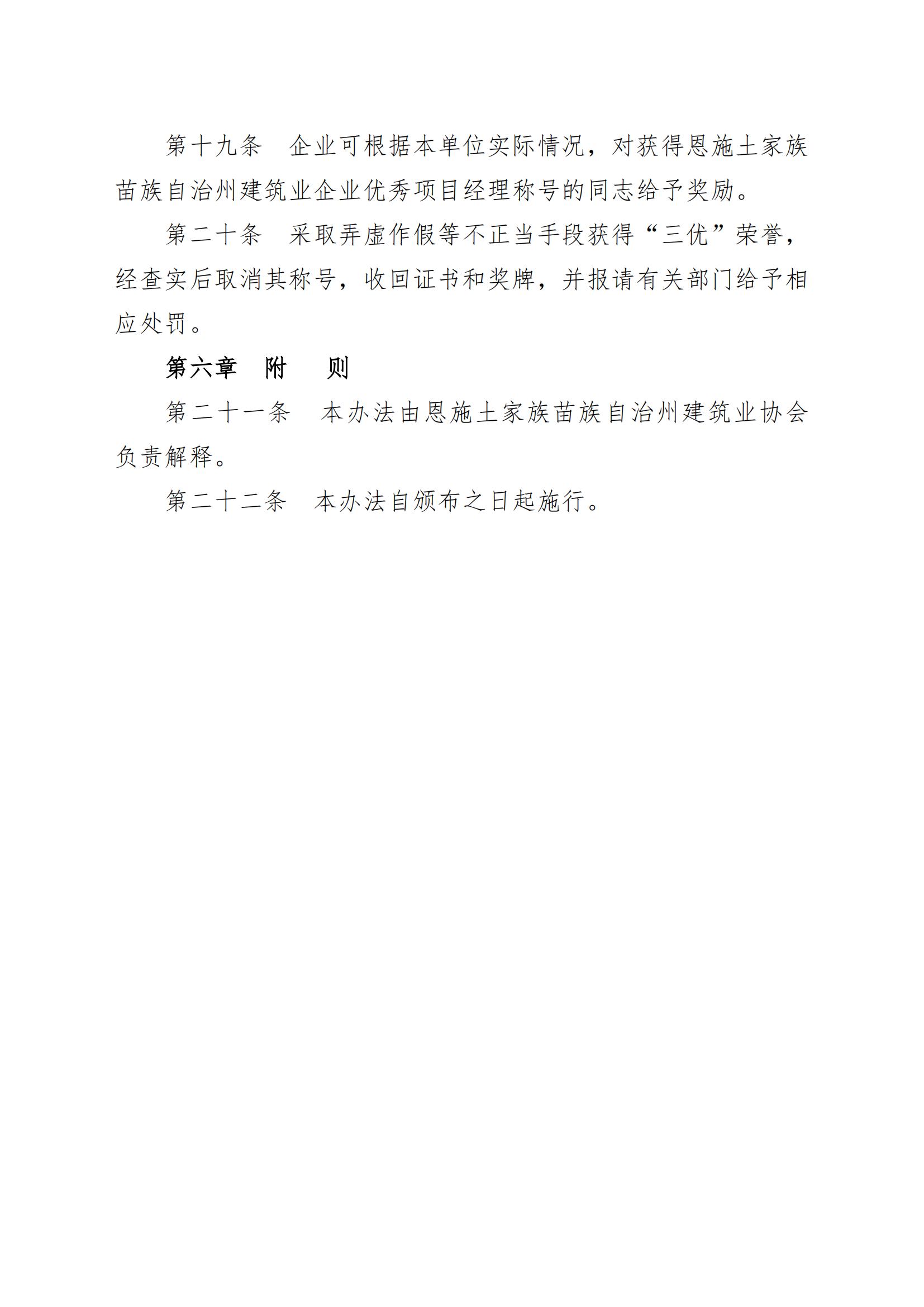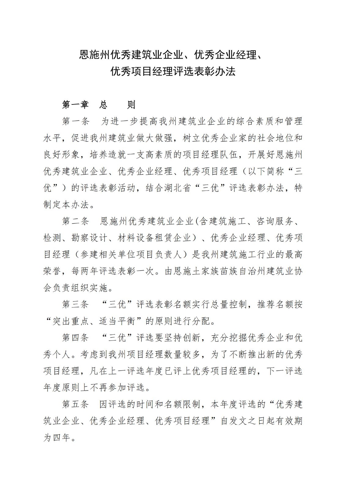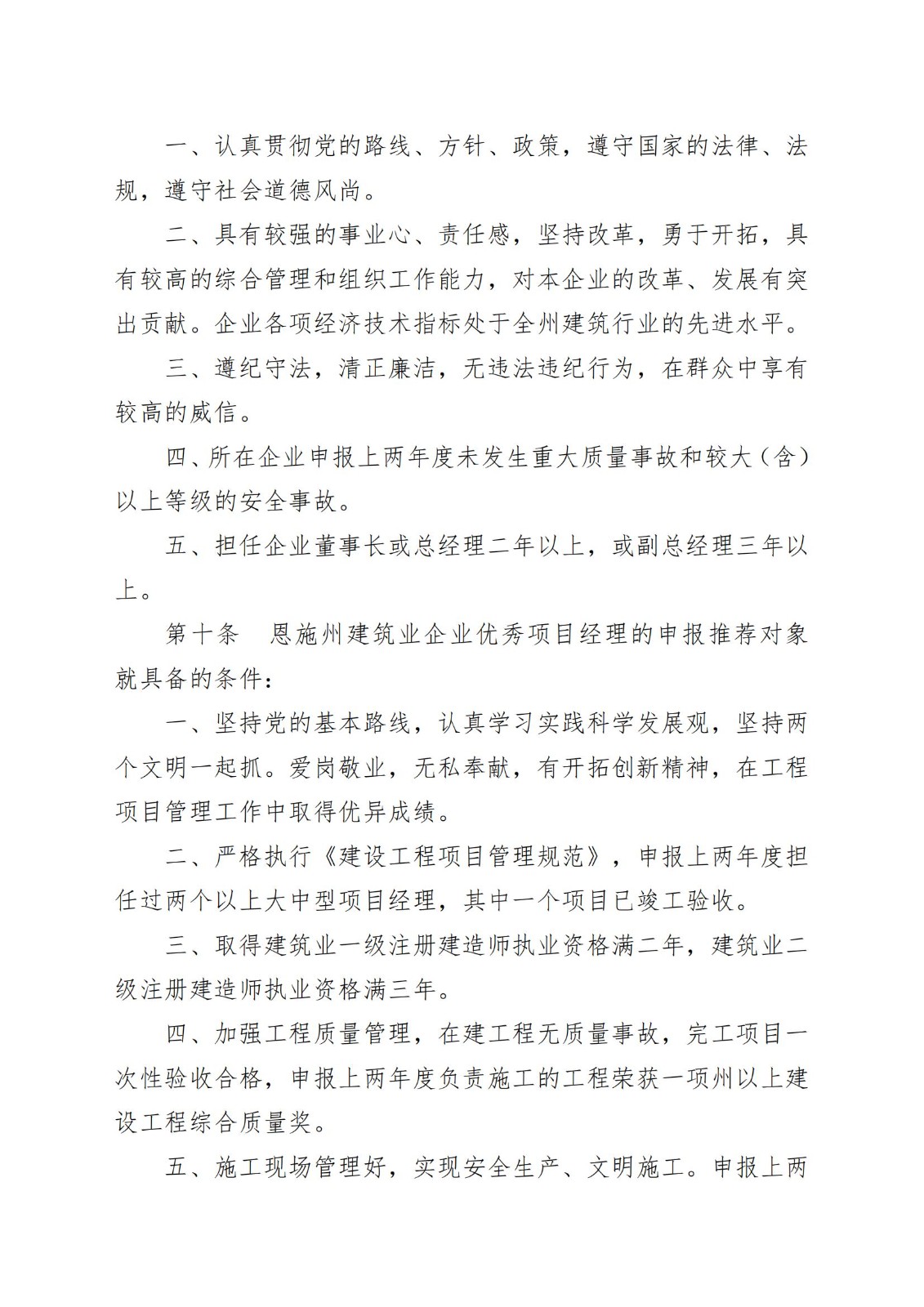 恩施州优秀建筑业企业、优秀企业经理、优秀项目经理评选表彰办法